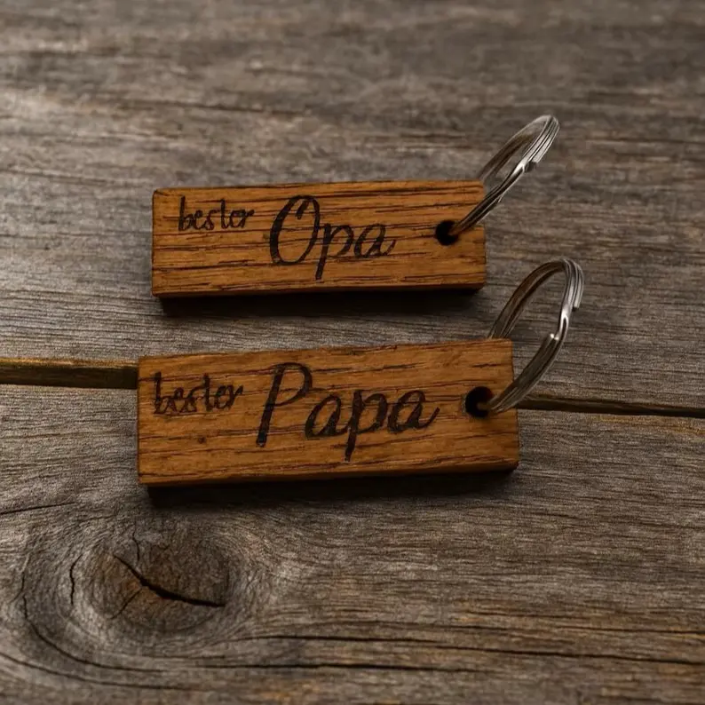 Schneidebretter mit Gravur, personalisierte Schlüsselanhänger, Untersetzer, Geschenkboxen und vieles mehr.