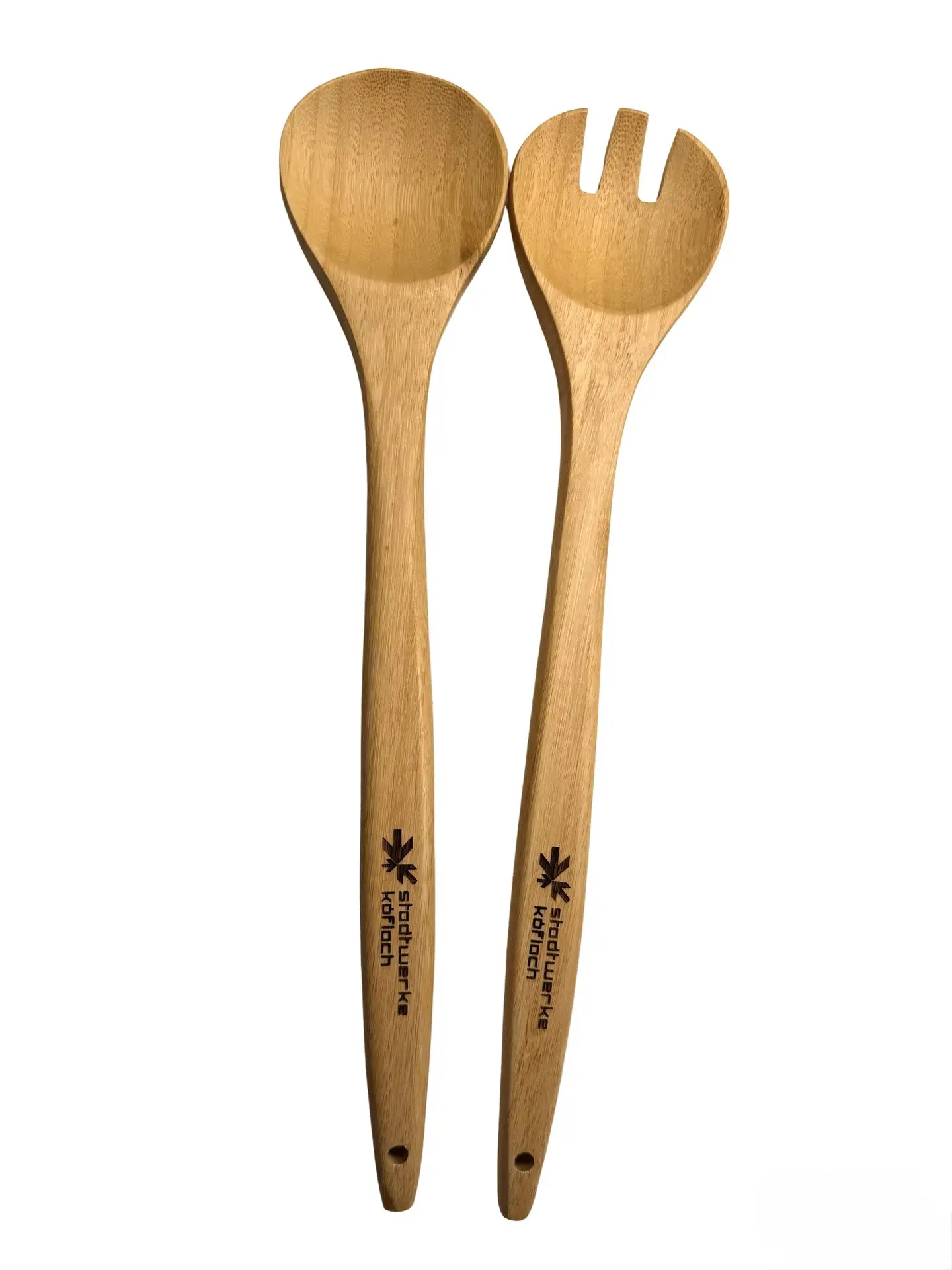 Manche Geschenke verschwinden in der Schublade – andere werden Teil des Alltags. Für die Stadtwerke Köflach durften wir ein Mitarbeitergeschenk umsetzen, das genau das schafft: ein hochwertiges Holz-Salatbesteck-Set (Löffel & Gabel), personalisiert mit Logo.