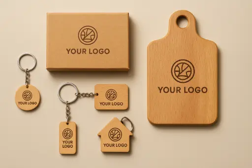 - Schlüsselanhänger aus Holz mit Logo